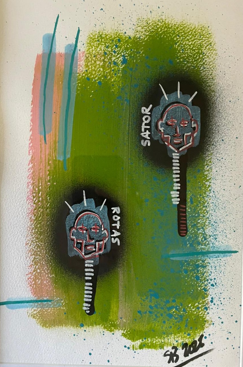 Mooi en origineel werk (mixed media op papier) van Sherwood Black.
