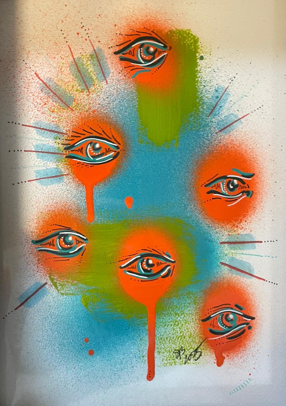 Mooi en origineel werk (mixed media op papier) van Sherwood Black.